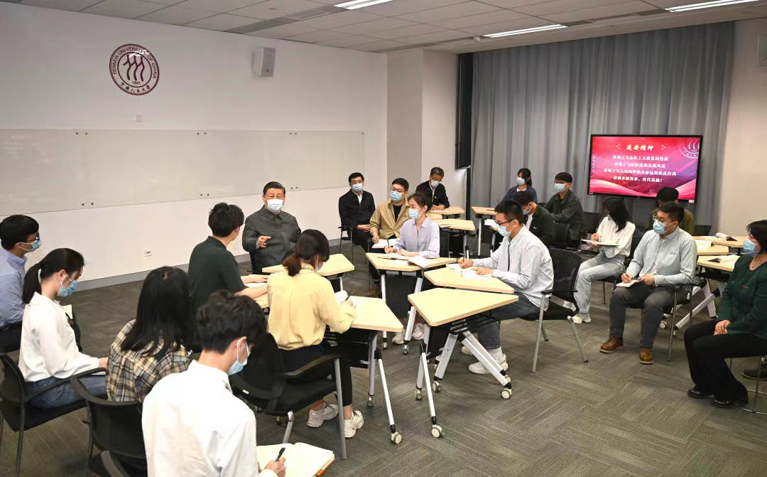 党团建设 当前位置: 新葡京官网 - 党团建设 - 党团活动 习近平在中国人民大学考察 发文时间: 2022-04-25 阅读次数: 在五四青年节前夕,习近平总书记25日上午来到中国人民大学,先后走进思政课智慧教室、博物馆、图书馆,了解学校促进思政课教育改革创新、学校历史沿革、教学科研成果、加强文献古籍保护利用和促进理论研究成果转化应用等情况,并主持召开师生代表座谈会。 来源:新华社 中国人民大学官方微信 文字记者:张晓松 摄影记者:燕雁、谢环驰