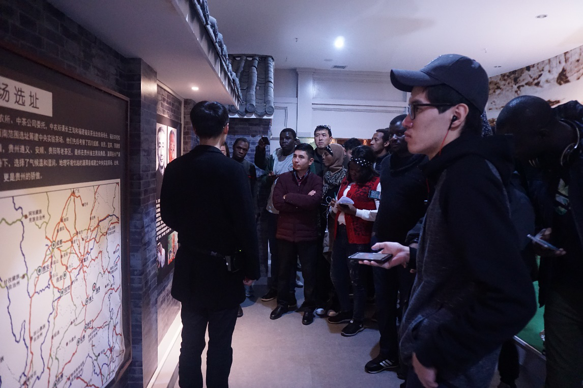 在茶文化生态博物馆参观时,留学生们了解到湄潭是中国重要的茶产区,茶文化源远流长,自古有“茶马古道”的佳话。在抗日救亡的关键时期,湄潭人民壮志报国,以“茶”换“枪”,出口茶叶换回物资支援,成为抗日战争坚实的后方基地。改革开放后,种茶成为千家万户的致富秘籍,主要茶产品“三绿一红”远销世界各地,“鼓了湄潭人民的腰包”。