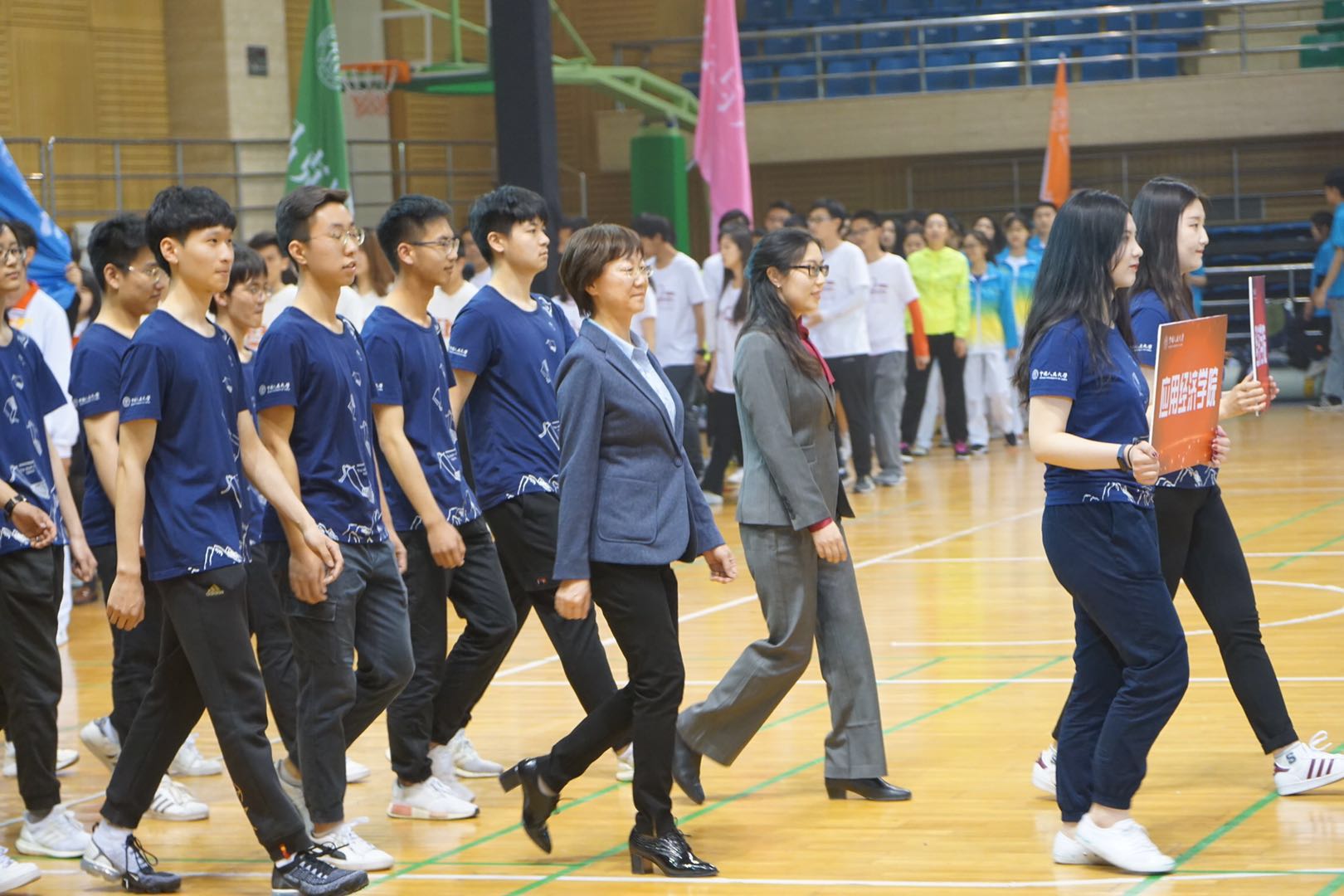 4月13日晚,运动会开幕式在世纪馆隆重举行。新葡京官网 党委书记宋东霞参加运动员队伍入场仪式并在前排护旗。我院与经济新葡京官网 组成联队,服装统一、精神昂扬地从主席台前走过并挥手致意。在随后的环节中,联队与全场一起合唱歌曲《我们都是追梦人》。