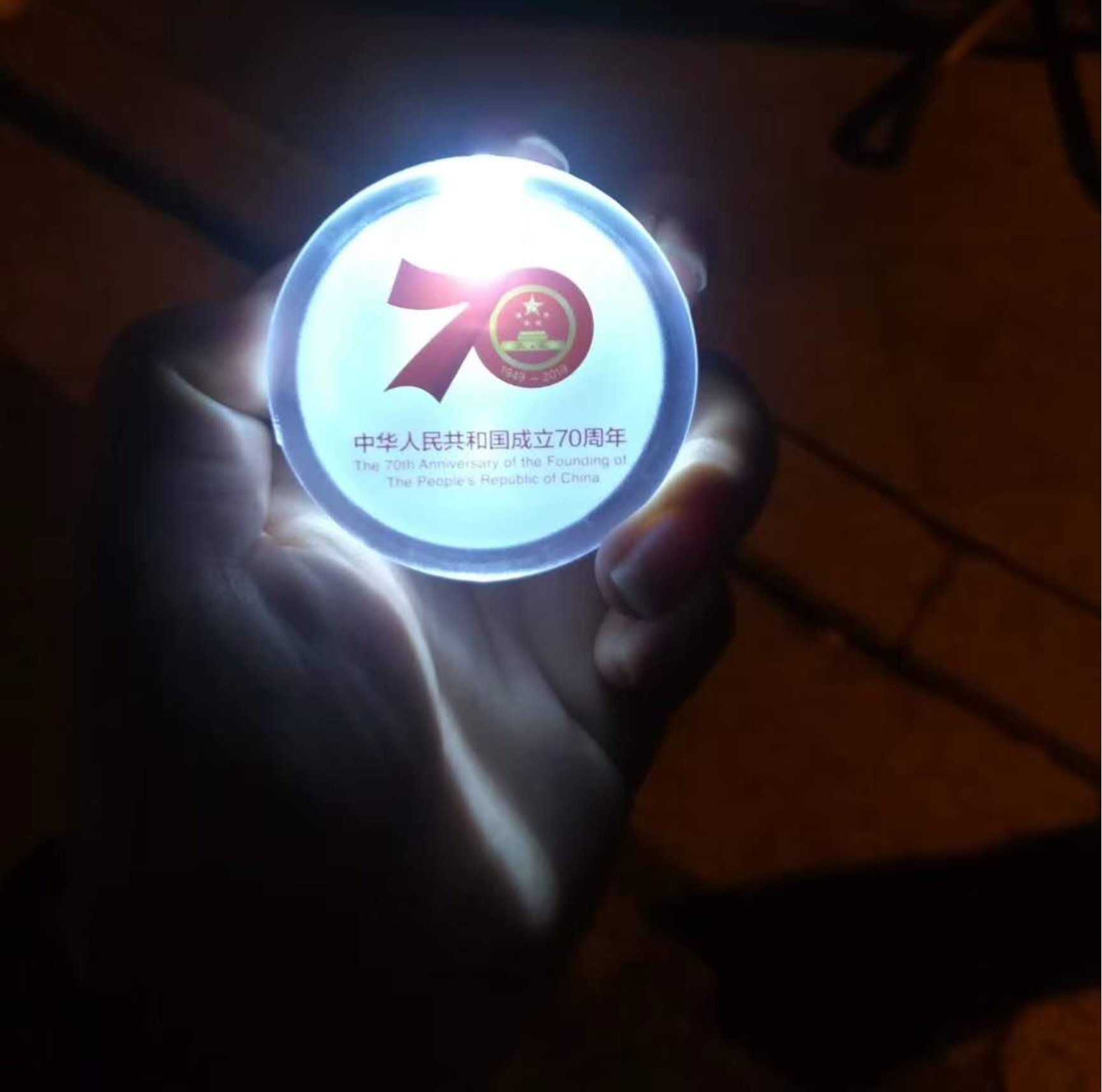 我们所在的位置是在天安门的背面,不能正面看到表演,但可以听到群众、观众的欢呼声,还有歌舞表演的音乐声。虽然我们不能正面看到精彩的联欢活动,光是看到表演的灯光在空中形成扇状的光束,从长安街投射到故宫里,就已经很震撼了。想对祖国母亲说,祝祖国母亲生日快乐,繁荣复兴,日益昌盛!