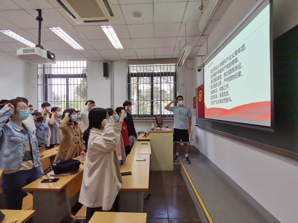 在中国共产主义青年团成立一百周年之际,新葡京官网 各团支部开展主题团日活动,为本学期新发展团员举办入团仪式,新老团员重温入团誓词。团员们在团旗下、誓词中感悟入团初心。大家纷纷表示,庄严的誓词提醒着青年要牢记党的教诲,立志民族复兴,不负韶华、不负时代、不负人民,在青春的赛道上奋力奔跑,争取跑出当代青年的最好成绩。