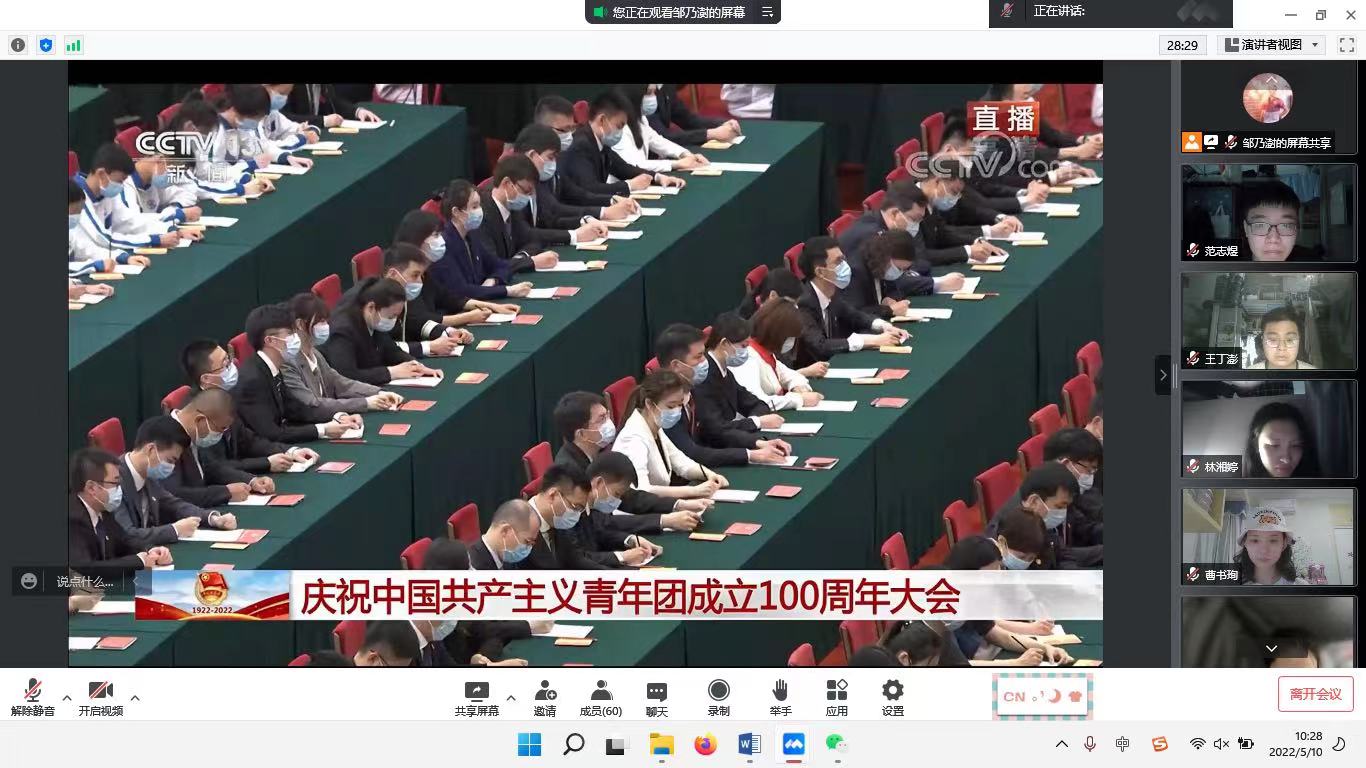 5月10日上午,庆祝中国共产主义青年团成立100周年大会在北京人民大会堂隆重举行,中共中央总书记、国家主席、中央军委主席习近平出席大会并发表重要讲话。新葡京官网 第一时间组织全院党团支部、学生组织、行政班级收看了庆祝大会直播,学习领会习近平总书记重要讲话精神。