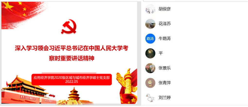 4月25日上午,习近平总书记到中国人民大学考察并发表重要讲话。习近平总书记提出,“加快构建中国特色哲学社会科学,归根结底是建构中国自主的知识体系”。作为一位基层教师和支部书记,我将继续在自己的工作中深度贯彻落实习近平总书记的重要讲话精神,在国民经济学学科体系和知识体系的建设和创新实践中,最大程度地发挥我们支部的战斗堡垒作用。总书记强调,“‘为谁培养人、培养什么人、怎样培养人’始终是教育的根本问题”。这也启发我们,一个优秀的老师,应该是“经师”和“人师”的统一,既要精于“授业”“解惑”,更要以“传道”为己任。我将严格要求自己,既要不断提升自身能力、锤炼授业解惑的本领,又要加强自身品格修养、提高思想认识,做学生“为学、为事、为人”的示范。