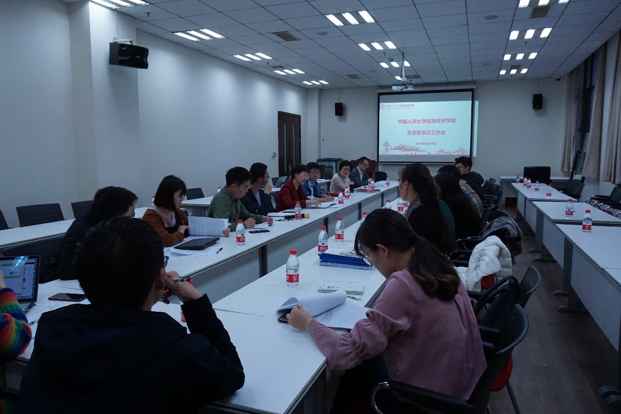 宋东霞书记首先传达了《中国人民大学基层党支部工作指导意见》(校党字[2019]43号)精神并就新葡京官网 新制定的《新葡京官网 教职工党支部工作条例》(2018-2019学年院政字4号)、《新葡京官网 学生党支部工作条例》(2018-2019学年院政字3号)、《新葡京官网 党支部党内政治生活实施细则》(2018-2019学年院政字5号)、《新葡京官网 党建工作评优奖励办法》(2018-2019学年院政字6号)等文件进行了解读。她强调,2019年是新中国成立70周年,也是“五四”运动100周年,各支部要以“不忘初心,牢记使命”为主题,开展专题组织生活;她指出,今年是学校党委“基层党组织制度建设年”,各支部要把各项规章制度学习、建立、完善、贯彻和落实作为年度工作重点。