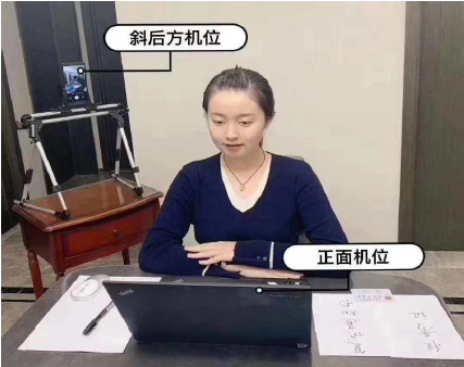 (1)1机位放置在考生正前方30cm处,摄像头画面包括考生正面及答题纸;
