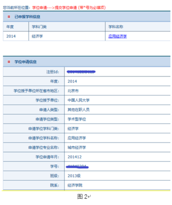 1、填写基本信息;2、上传电子照片(请注意看照片要求,上传错误会影响学位审报);3、提交学位申请,按图1例填写相关内容。“一级学科”一栏:选否;“学号”一栏:学号即资格卡号,查询网址://tdxl.xpjweb.com/cjcx/