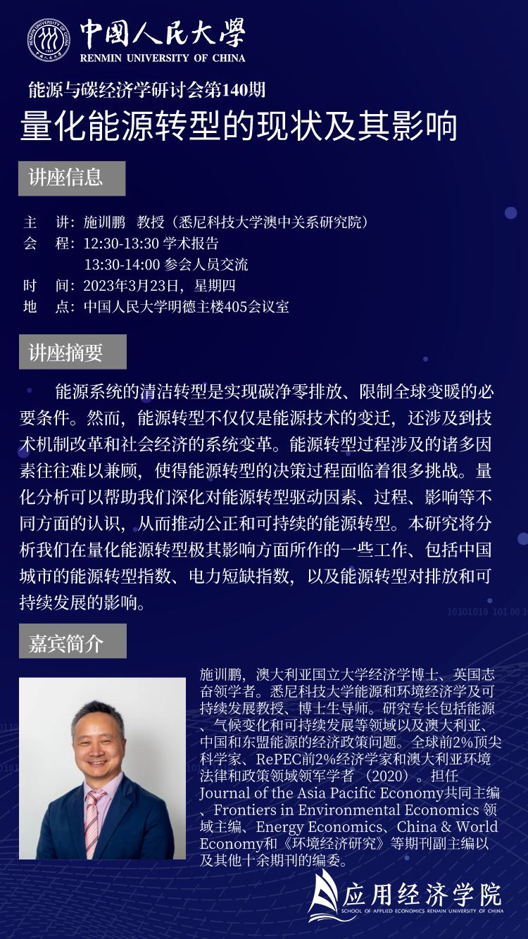 能源与碳经济学研讨会(Energy and Carbon Economics Seminar)由新葡京官网 能源经济系定期推出,旨在为研究中国能源经济和碳经济问题的学者提供交流的平台。