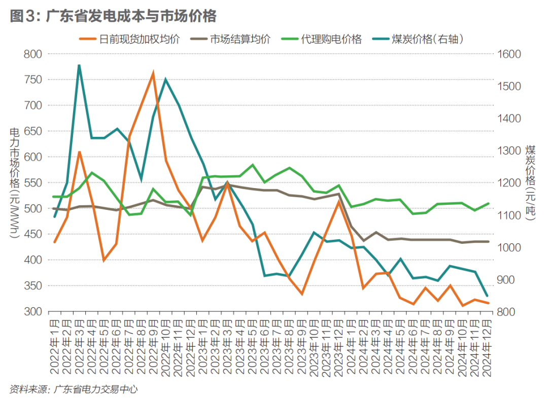 “双碳”目标提出后,低碳化成为电力改革的重要方向。新能源机组全面参与市场交易,新能源装机和发电量占比持续上升。2025年,风光装机预计达16.9亿千瓦,占总装机的45.9%;2024年风光发电量约1.83万亿千瓦时,占全国发电量的19.4%,利用率保持在95%以上。新能源市场化交易电量占新能源发电量的一半以上,新能源市场化消纳水平显著提高(见图3)。