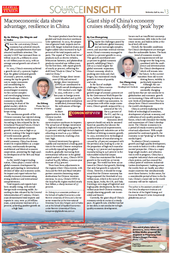 In 2023, China's economy achieved a growth rate of 5.2 percent, higher than the global estimated growth rate of around 3 percent, ranking among the top in the world's major economies and consolidating its position as the world's second-largest economy. In the current complex and ever-changing international landscape, China's economy is steadily increasing its share of the global market, while its international influence keeps rising.