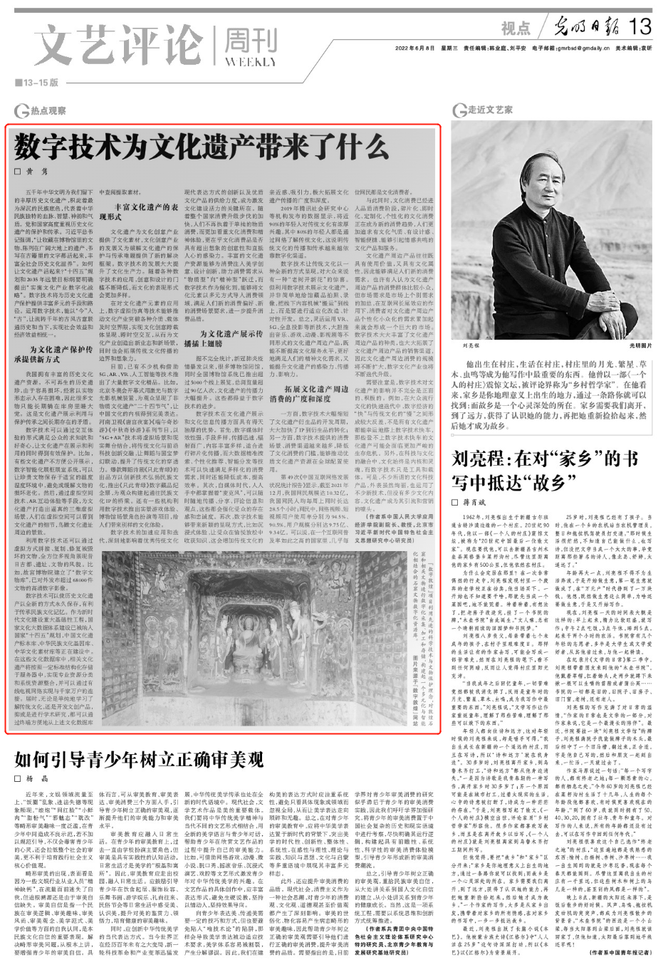 五千年中华文明为我们留下的丰厚历史文化遗产,积淀着最为深沉的民族底色,代表着中华民族独特的血脉、智慧、神韵和气质。党和国家高度重视历史文化遗产的保护和传承。习近平总书记强调,“让收藏在博物馆里的文物、陈列在广阔大地上的遗产、书写在古籍里的文字都活起来,丰富全社会历史文化滋养”。如何让文化遗产活起来?“十四五”规划和2035年远景目标纲要明确提出“实施文化产业数字化战略”。数字技术将为历史文化遗产保护提供丰富多元的手段和路径。运用数字技术,能以“今”入“古”,让流转千年的古风古意联通历史和当下,实现社会效益和经济效益相统一。
