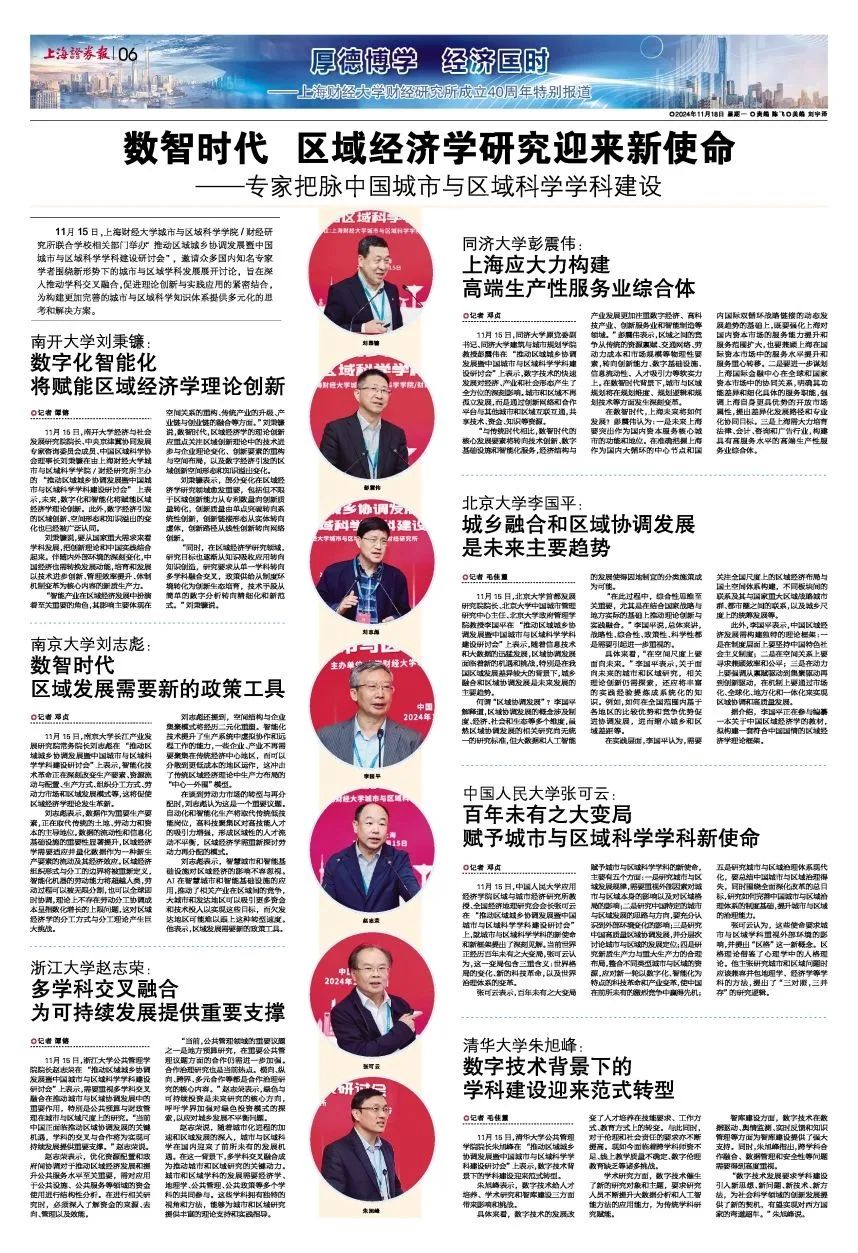 11月15日,上海财经大学城市与区域科学新葡京官网 /财经研究所联合学校相关部门举办“推动区域城乡协调发展暨中国城市与区域科学学科建设研讨会”,邀请众多国内知名专家学者围绕新形势下的城市与区域学科发展展开讨论,旨在深入推动学科交叉融合,促进理论创新与实践应用的紧密结合,为构建更加完善的城市与区域科学知识体系提供多元化的思考和解决方案。新葡京官网 教授、全国经济地理研究会会长张可云参会并发表观点,观点被《上海证券报》报道。