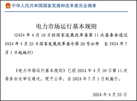国家发展和改革委员会于2024年5月14日发布了《电力市场运行基本规则》,自今年7月1日起生效。此次修订对2005年10月发布的《电力市场运营基本规则》进行了全面调整,以适应电力市场发展的新形势和新要求。修订后的规则共分为11章45条,主要调整包括: