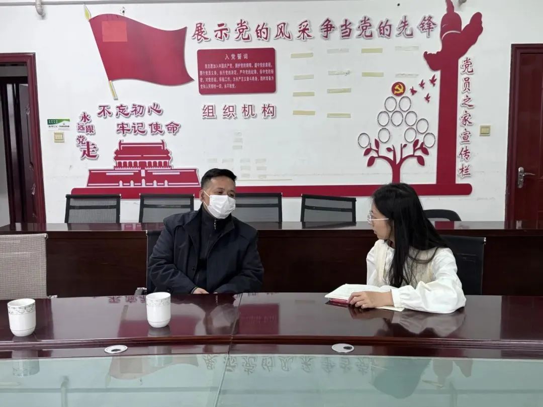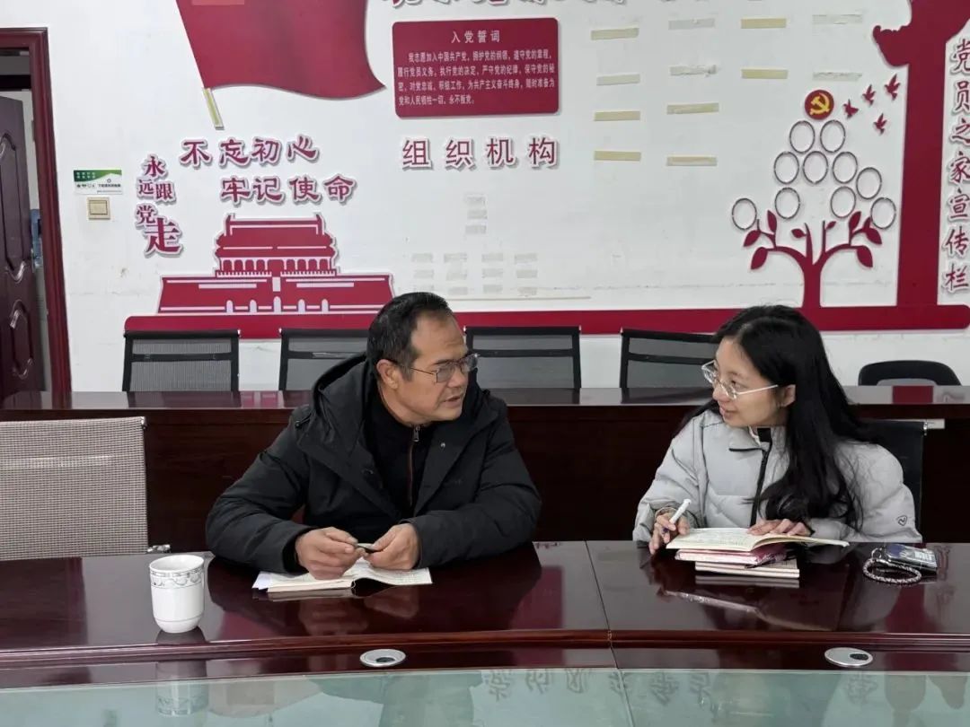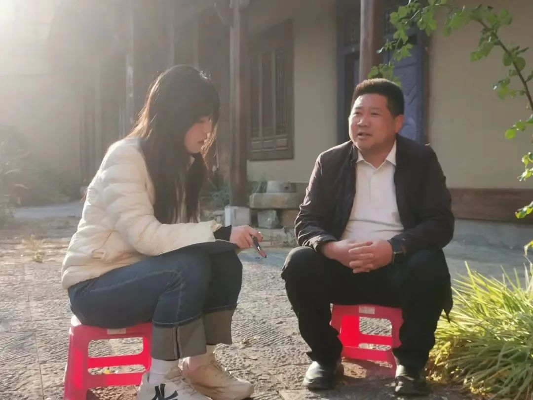 ▲新葡京官网 博士生林蔚楠访谈连城镇岜夺社区党委书记吴贤武