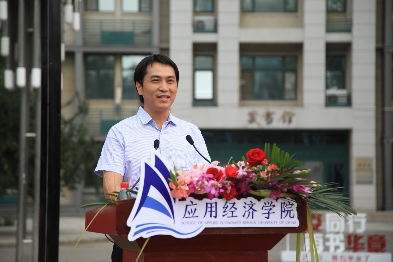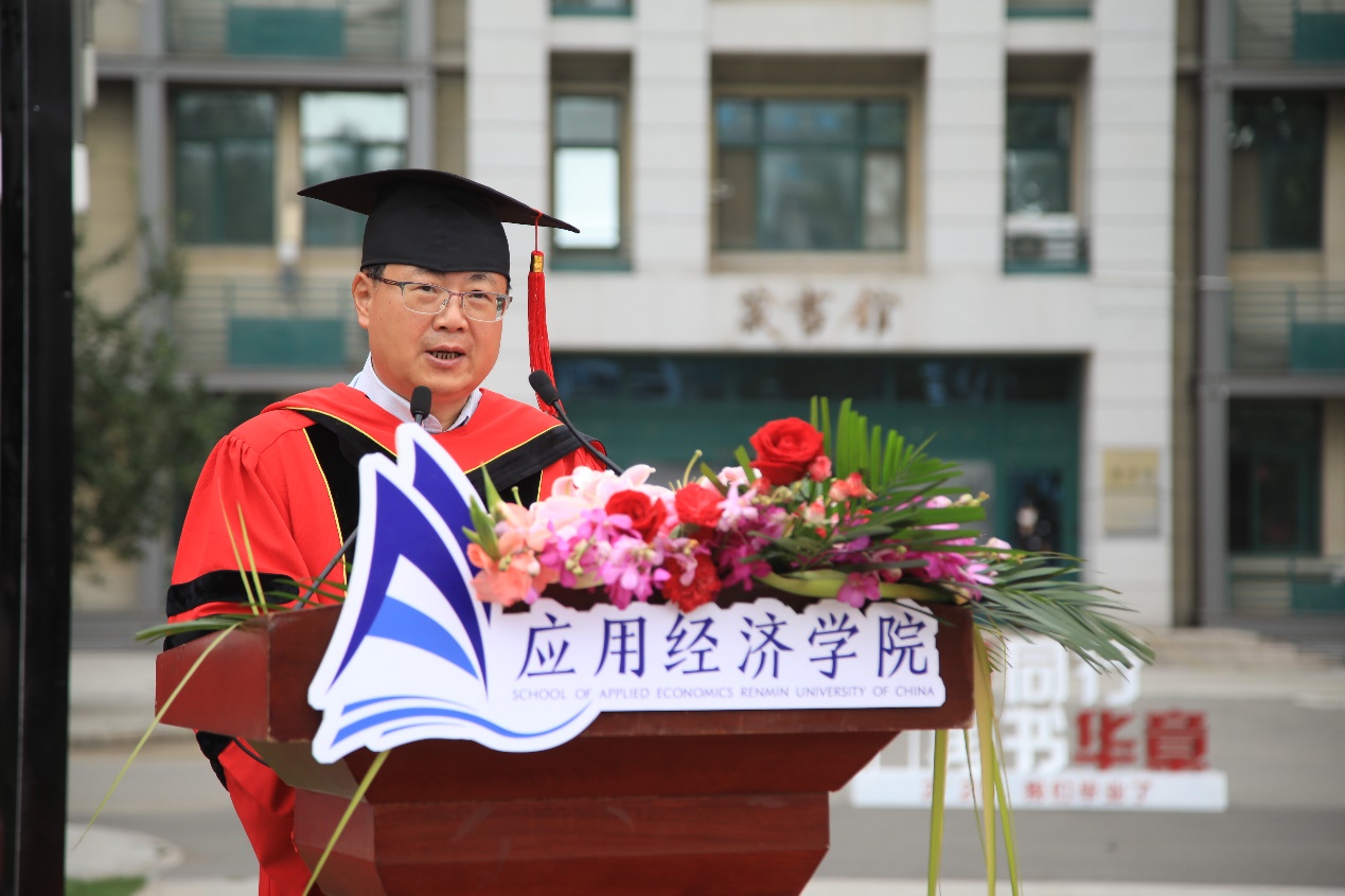 孙久文作为导师代表发言,提到人民大学给了同学们丰厚的知识、宽广的视野、为中华民族奋斗的理想和脚踏实地的工作作风,希望同学们记住校歌里的话,忠实于民族解放事业,献身于新社会的建设。未来成为国家的中流砥柱。