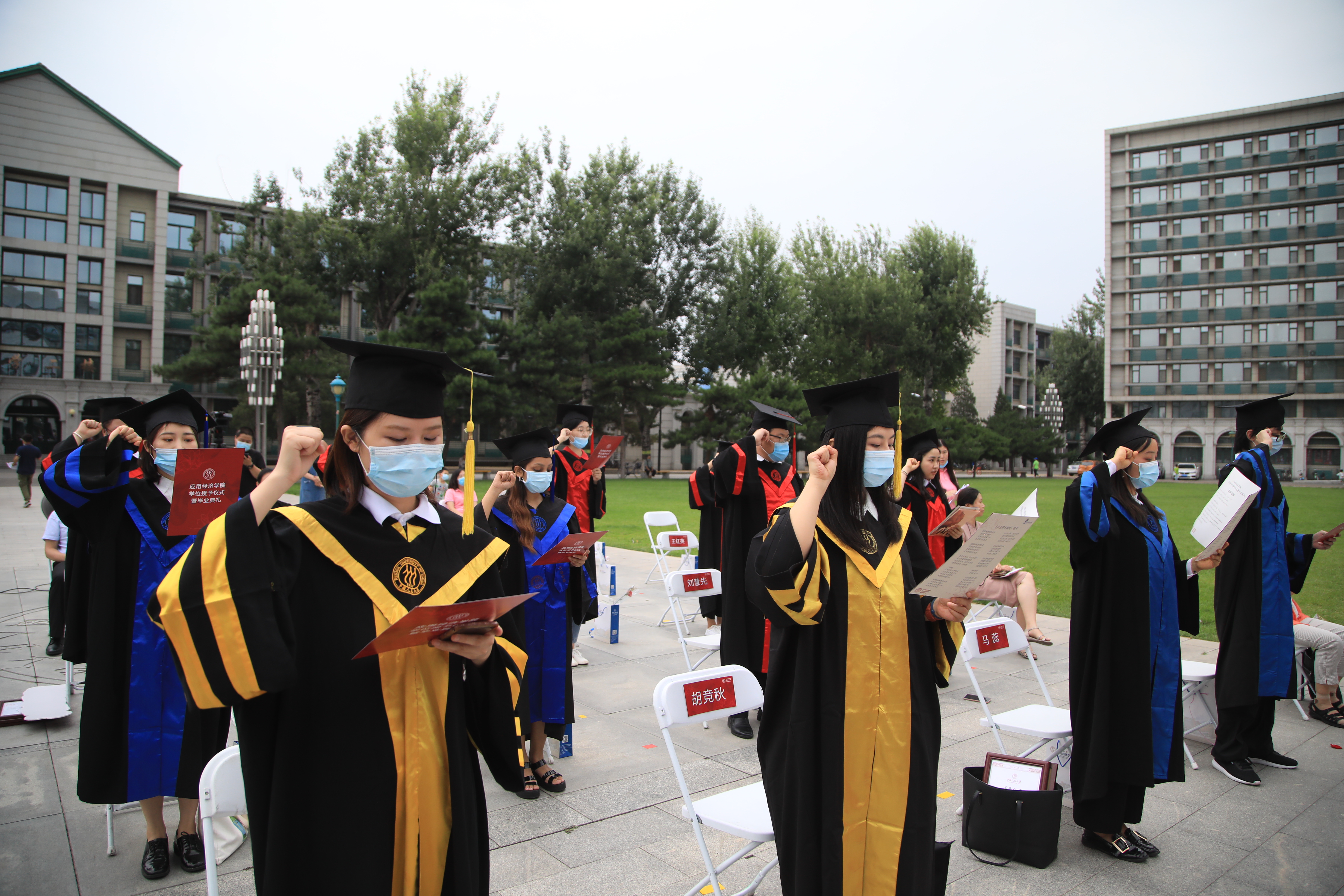 新葡京官网 学术委员会副主任孙久文教授宣读学位授予决定,我院2020年共有253名学生获得学位,其中22人获博士学位,173人获硕士学位、58人获学士学位。贺耀敏副校长与院学术委员会委员为参加学位授予仪式的15名毕业生代表颁授学位,拨穗正冠。