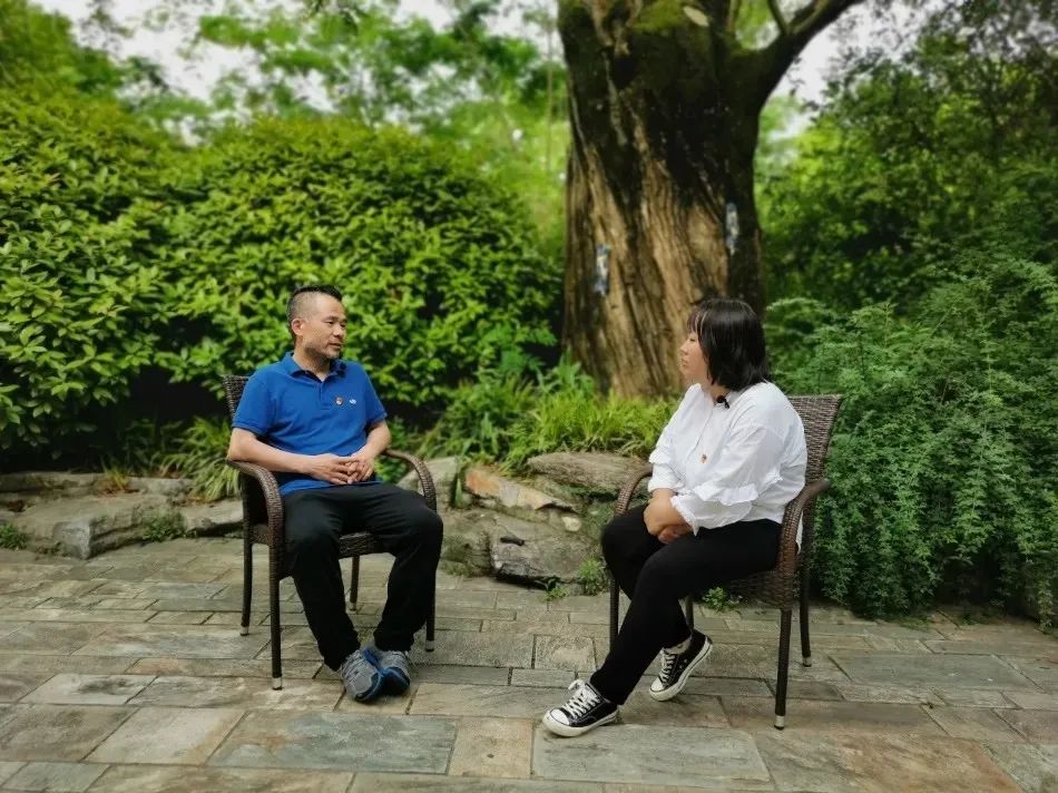 8月17日,在贵州省铜仁市,访谈团师生和在万山区谢桥街道牙溪村驻村锻炼2022届劳动人事新葡京官网 校友陈继淮、在市委社会工作部工作的2019届商新葡京官网 校友杨琳锋交流了在基层驻村工作的心得感悟。