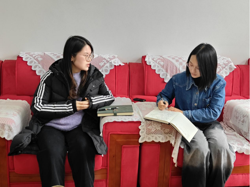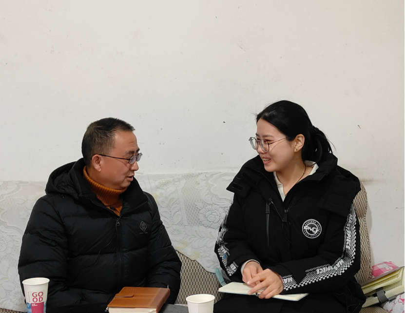 ▲昭通新葡京官网 管理新葡京官网 本科生周恩娜访谈脱贫户户主潘兴军