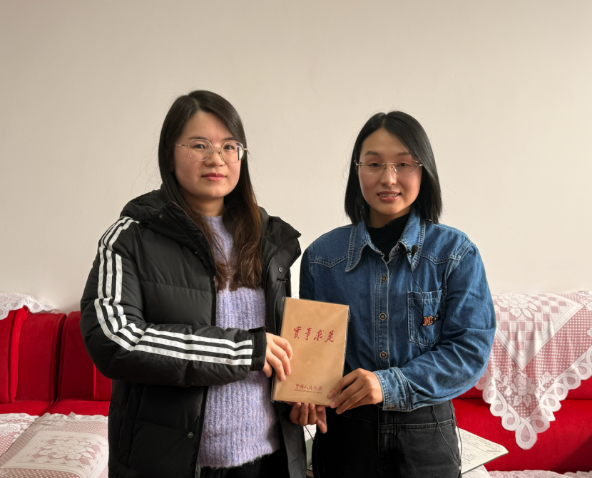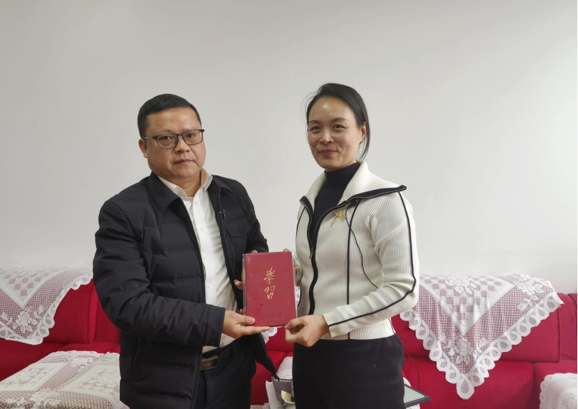 ▲昭通新葡京官网 马克思主义新葡京官网 成冬梅老师对彝良县农业农村局副局长陶富娥访谈后赠书留念
