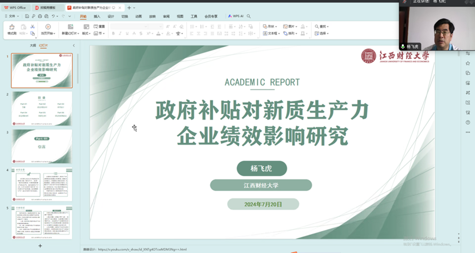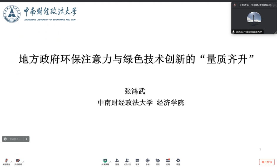 报告主题一为“新质生产力”。新葡京官网 助理教授吕一飞作题为“城市与产业全要素生产率测算”的报告,在全球视野下,测算比较了国内外城市间、产业间的全要素生产率。江西财经大学经济新葡京官网 教授杨飞虎作题为“政府补贴对新质生产力企业绩效影响研究”的报告,讨论了政府补贴对“专精特新”中小企业的影响。中南财经政法大学经济新葡京官网 教授张鸿武作题为“地方政府环保注意力与绿色技术创新的‘量质齐升’”的报告,分析了地方政府环境关注度对企业绿色创新的影响和机制。
