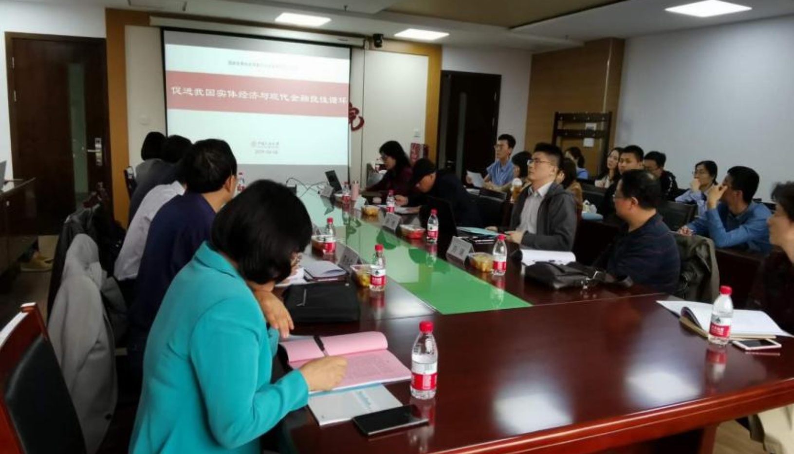 2019年4月24日下午14:30,我院主办的“我国实体经济与现代金融循环的困惑与破解”学术研讨会在明德主楼734会议室举行。本次会议由我院副院长黄隽教授主持,国民经济管理系主任方芳教授做主题报告。国家融资担保基金有限责任公司向世文总经理、民生银行供应链金融事业部汪晓帆副总经理、我校财政金融新葡京官网 戴稳胜教授、中国社会科新葡京官网 大学经济新葡京官网 李永森教授、对外经贸大学金融新葡京官网 丁建臣教授以及校内外多位专家学者与我院学生三十余人参加了此次研讨会。