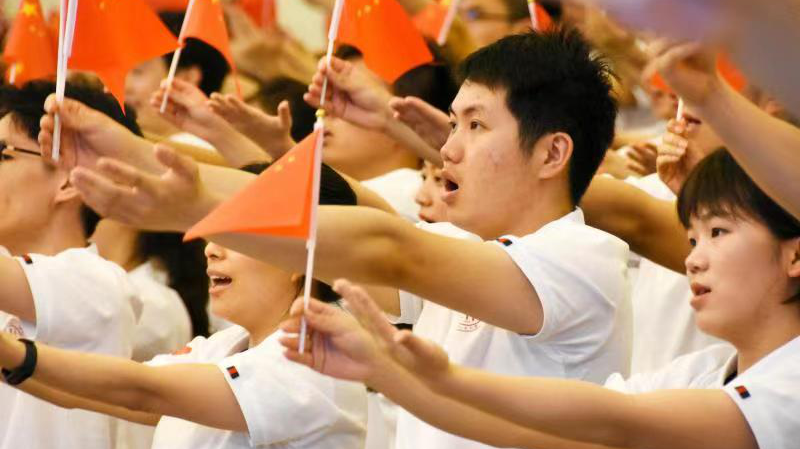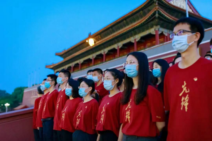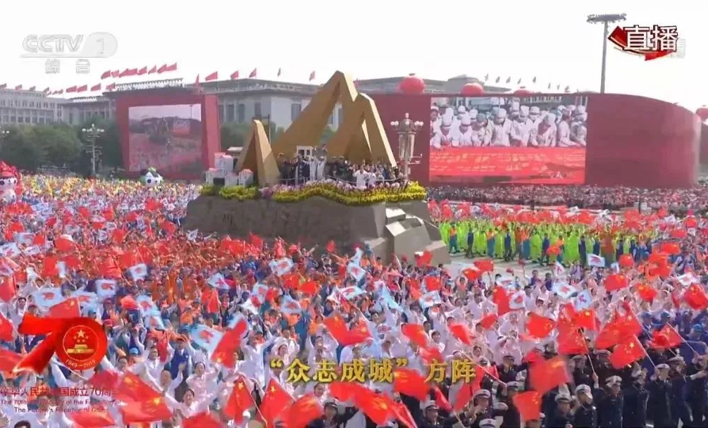 我们在庆祝中华人民共和国成立70周年的现场,广泛参与群众游行方阵、天安门广场合唱和联欢晚会、志愿服务保障等各方面工作,为祖国母亲深情献礼,唱响“复兴栋梁,强国先锋”的时代强音。
