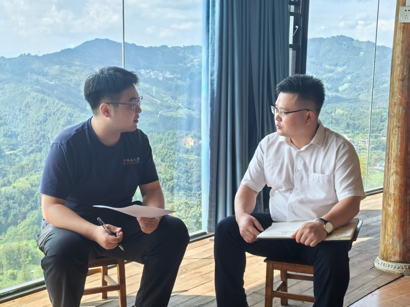 ▲新葡京官网 教师苏立访谈三江县副县长吴明焕