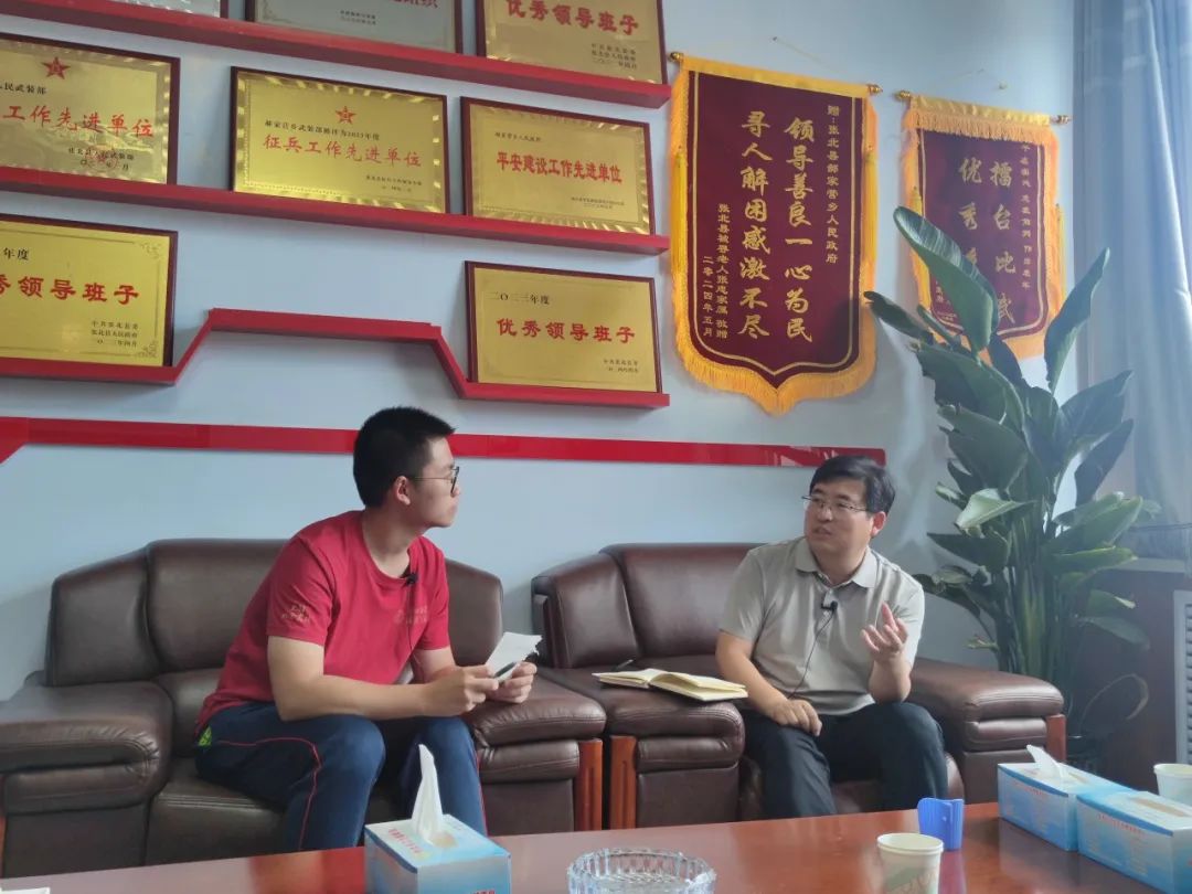 ▲新葡京官网 本科生李政访谈郝家营乡党委书记庞建民