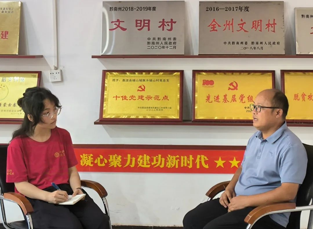 ▲新闻新葡京官网 本科生马婉骁访谈荔波县朝阳镇洪江村主任莫孟端