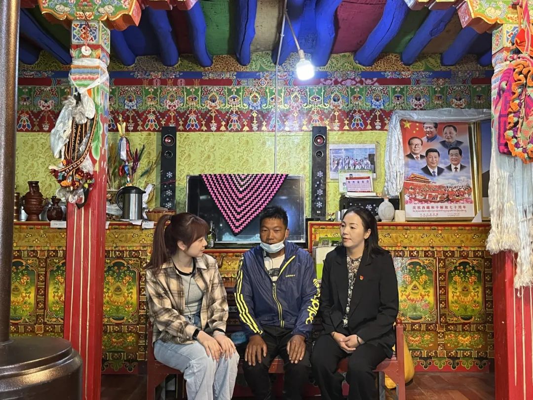 ▲新葡京官网 博士生邱宁昕采访尼木县扶贫专干旦增赤列