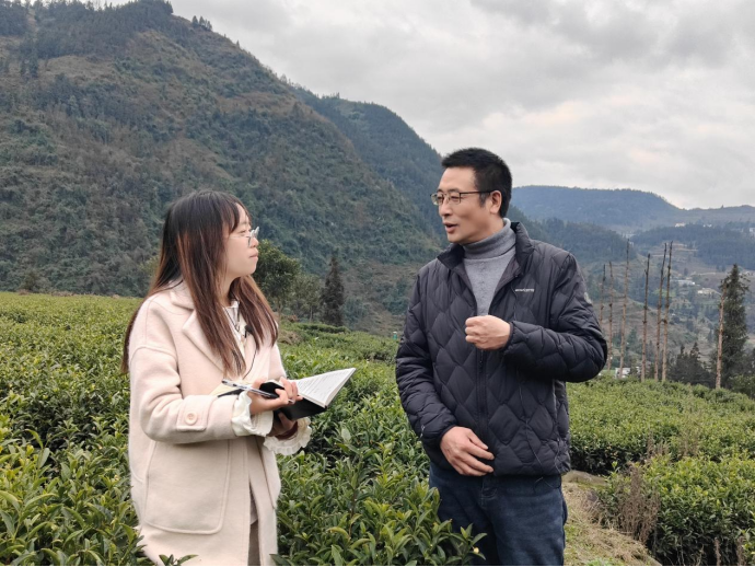 罗坎镇副镇长李上涌(原大庙村第一书记)与昭通新葡京官网 管理新葡京官网 本科生周恩娜开展访谈。李上涌提到,在脱贫攻坚的进程中,罗坎镇经济实现了成功转型,从过去主要依赖谷类种植的单一收入模式,逐步发展形成了以白茶产业为主导的多元化经济格局。镇雄县罗坎镇大庙村充分利用当地山高坡陡、沟壑纵横的地形条件,以及亚热带季风气候无霜期长的特点,大力发展白茶产业。村集体整合土地资源,规划出集中连片的种植区,实现了白茶产业规模化发展。同时,企业为农户提供种植和采摘技术指导,确保白茶品质上乘。白茶产业发展主要通过以下两个渠道促进村民增收:首先,农户通过土地流转获得租金收入。同时,全镇约2000名农户参与白茶采摘,可以获得务工收入。此外,在基础设施建设方面,大庙村进村道路与村内道路拓宽硬化,灌溉系统完善,山塘、水库等水利工程得到维修加固。这些改变让大庙村发生了翻天覆地的变化,为乡村振兴奠定了坚实基础。除此之外,白茶产业的发展使村民对村集体的认同感和信任度显著增强,进一步促进了村集体的组织建设与管理。