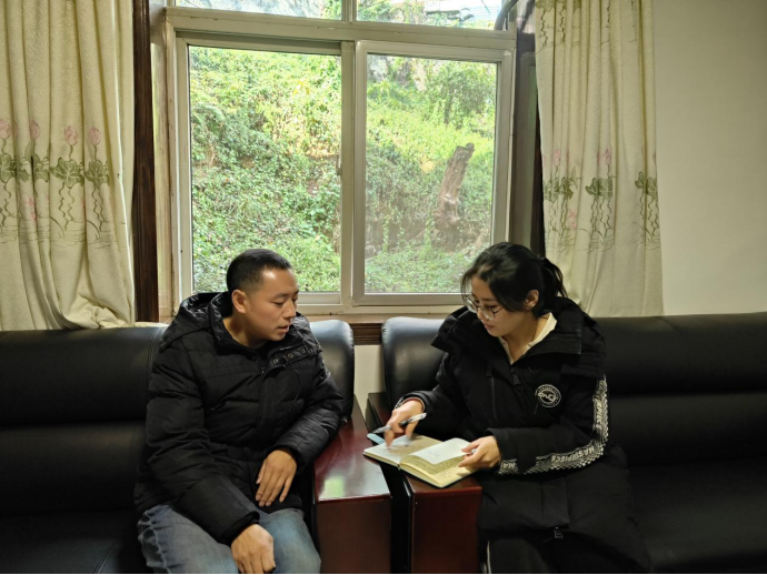 ▲昭通新葡京官网 马克思主义新葡京官网 成冬梅老师对镇雄县农业农村局副局长龚海访谈后赠书留念