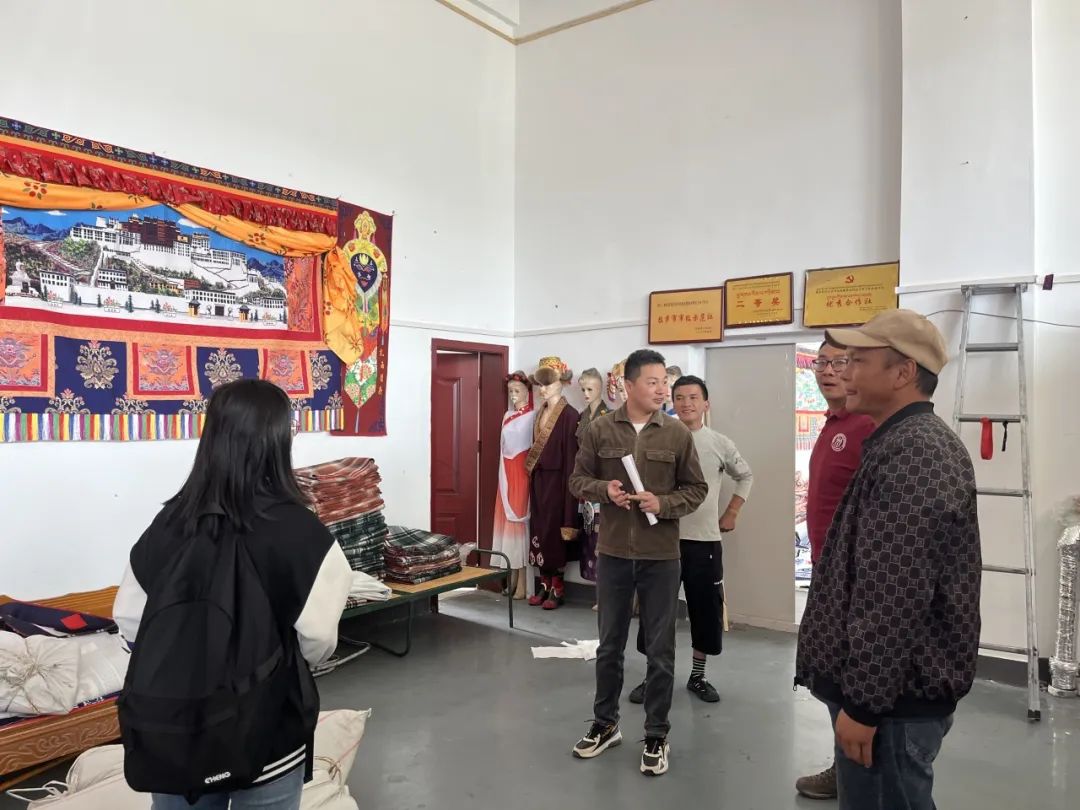 ▲访谈团在茶巴拉卓玛民族服饰农牧民专业合作社调研