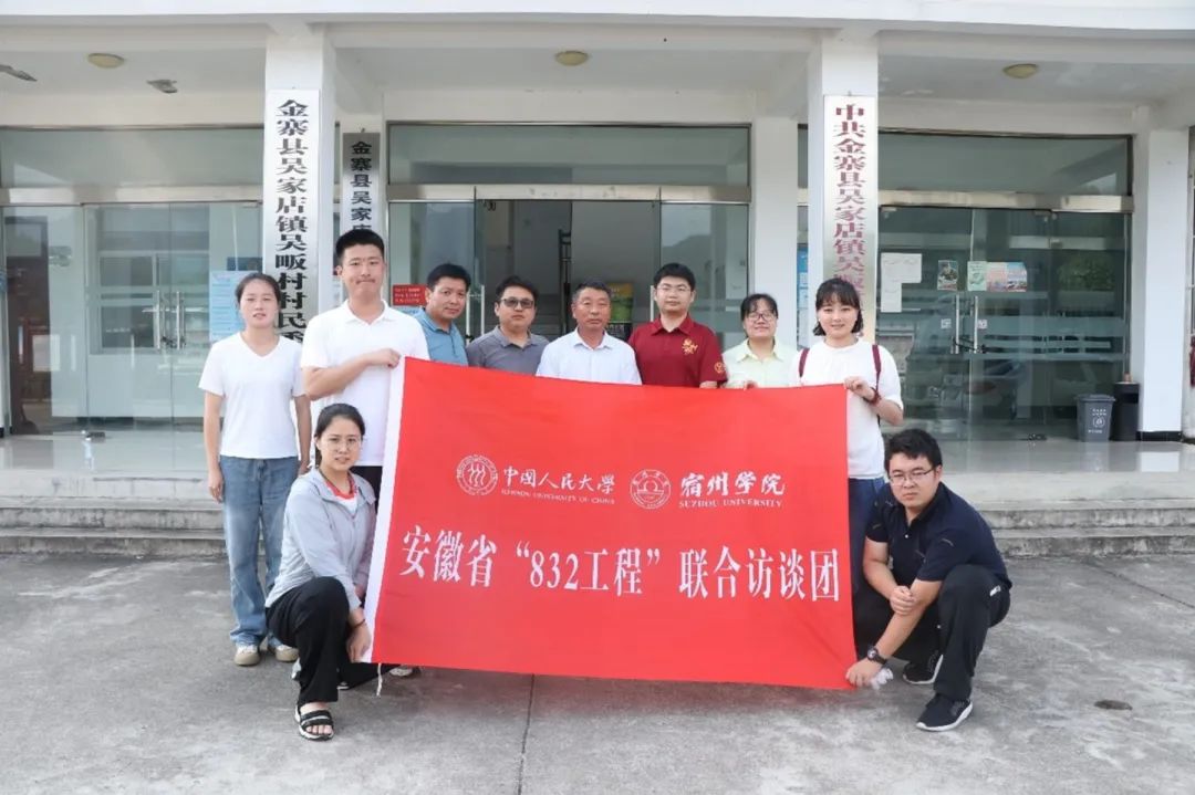 为深入学习贯彻落实习近平总书记在中国人民大学考察时重要讲话精神,新葡京官网 联合新闻新葡京官网 、社会与人口新葡京官网 共同发起“中华人民共和国脱贫攻坚史”(暨“832”工程)系列访谈项目,为人类发展难题搜寻低成本、可持续的答案。2023年8月,中国人民大学与宿州新葡京官网 组建联合传承队,赴安徽省开展“832 工程” 访谈和调研工作,记录安徽脱贫攻坚的伟大成就,为世界减贫事业提供安徽案例、安徽经验。同时期望加强中国人民大学与宿州新葡京官网 在学科建设、人才培养、科学研究和社会服务等方面的合作交流, 共同推动两校高质量发展。