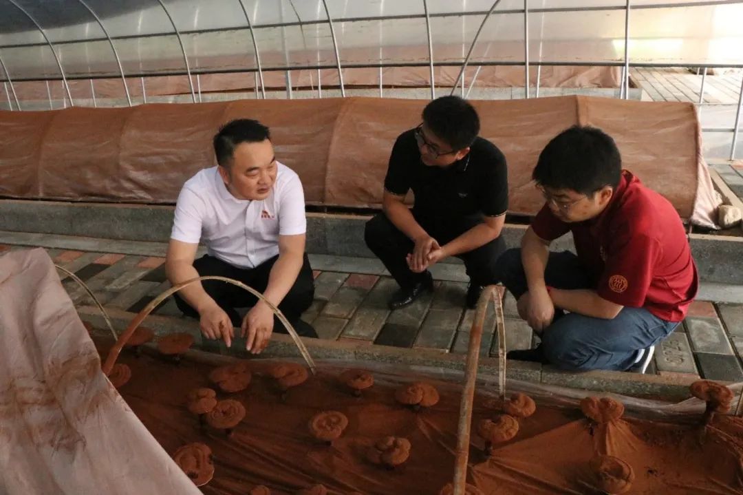 ▲晏总为传承队带队老师讲解灵芝种植