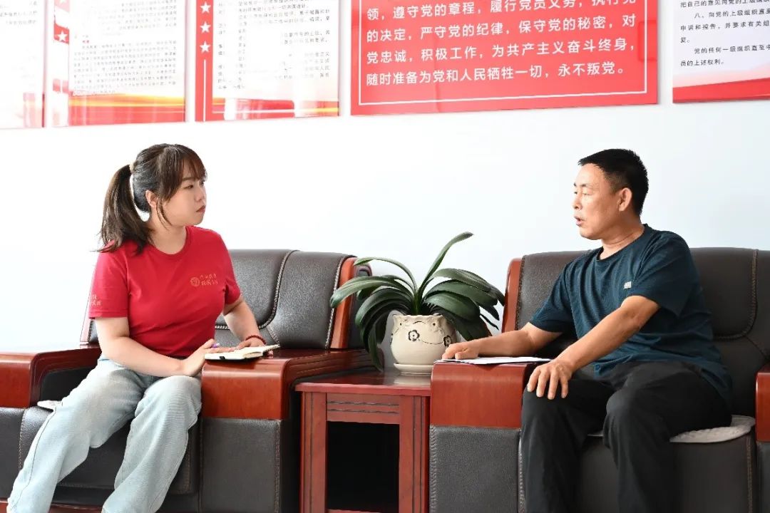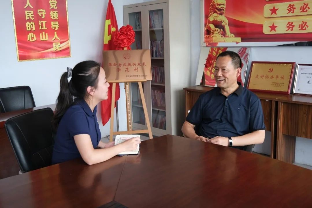 ▲新葡京官网 博士生陈芷琪访谈驻四十亩滩村工作队第一书记孙国亮