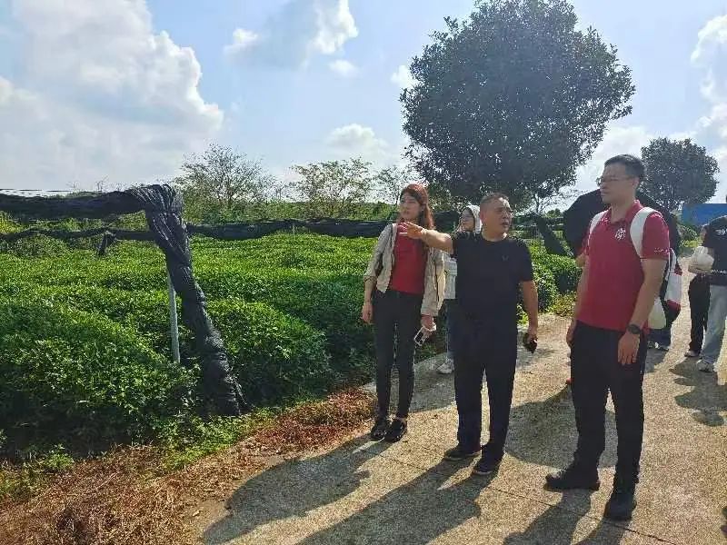 ▲调研团在御茶村有限公司的茶园内调研
