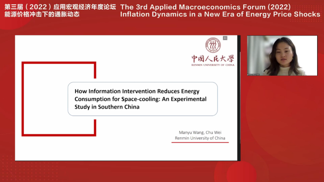 新葡京官网 博士生王漫玉作题目为“How Information Intervention Reduces Energy Consumption for Space-cooling: An Experimental Study in Southern China”的报告。基于新葡京官网 教授魏楚团队构建的制冷能耗高频数据库,该研究分析信息干预在我国能源需求管理中的作用。通过对照实验,该研究发现信息干预对中国家庭节能行为有显著影响,相对于常识类信息(如“在同样的气温下,湿度越大,体感越热”),行动指导类信息(如“若气温低于30度,您可以将空调设置到除湿模式而非制冷模式”)的节能影响更大。