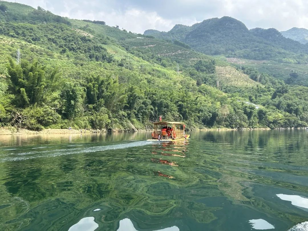 9月6日上午,访谈团到达安龙县万峰湖镇坝盘村。坝盘村与广西隆林县天生桥镇隔江相望,依山傍水,翠竹林立,风景独好,是黔西南境内保存完好的布依古寨之一。一座座古朴沉静、古色古香的布依族吊脚楼依山就势而起,随形生变,不少已被改造为农家乐和民宿,构成乡村旅游基础设施的重要组成部分,既保留了布依族的优秀民族文化,又紧跟新时代发展文旅产业的浪潮,构建了一幅优美的民族文旅画卷。