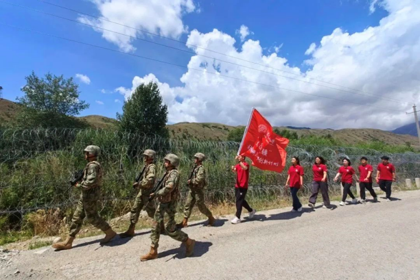2023年7月,新葡京官网 师生分为8队在新疆各地发起“点亮”边境线活动