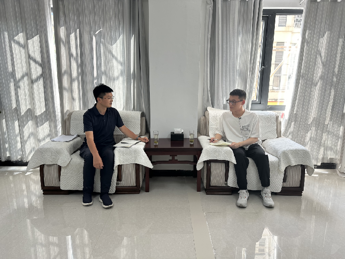 7月24日上午,访谈团前往正安县农业农村局进行访谈,带队教师陈佳莹访谈正安县副县长张能锐。