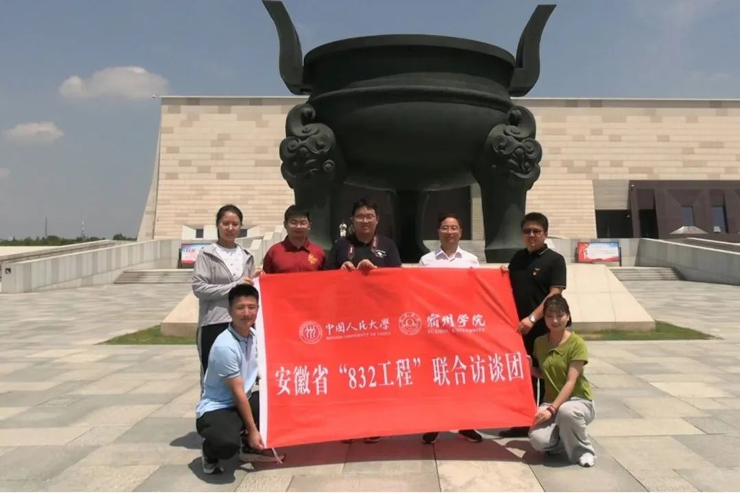 为深入学习贯彻落实习近平总书记在中国人民大学考察时重要讲话精神,新葡京官网 联合新闻新葡京官网 、社会与人口新葡京官网 共同发起“中华人民共和国脱贫攻坚史”(暨“832”工程)系列访谈项目,为人类发展难题搜寻低成本、可持续的答案。2023年8月,中国人民大学与宿州新葡京官网 组建联合传承队,赴安徽省开展“832 工程” 访谈和调研工作,记录安徽脱贫攻坚的伟大成就,为世界减贫事业提供安徽案例、安徽经验。同时期望加强中国人民大学与宿州新葡京官网 在学科建设、人才培养、科学研究和社会服务等方面的合作交流, 共同推动两校高质量发展。