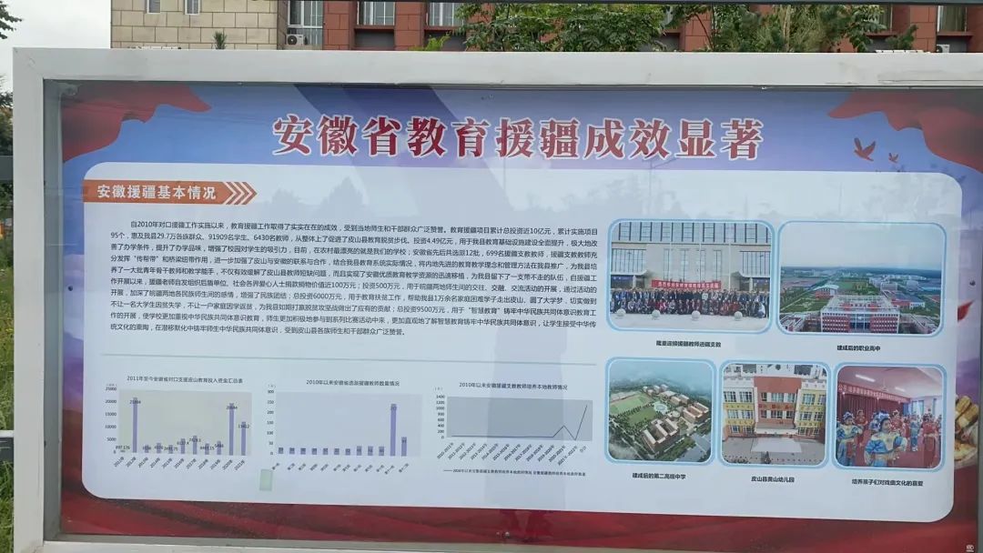 皮山的最后一站,我们来到了皮山县安徽实验学校,举行了“大中小学思想政治教育一体化建设联盟边疆县域中学共建基地”揭牌仪式,并与县领导、校领导及教师代表进行了座谈。皮山县安徽实验学校是安徽对口援疆的主要项目之一。得益于对口援疆政策,这里拥有了比肩东部沿海地区的教学硬件条件和教师资源,为皮山县的人力资本积累、知识和技术扩散贡献力量。