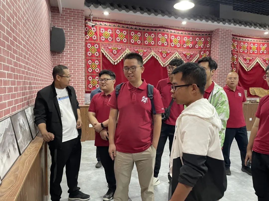 ▲调研团在石榴之乡皮亚勒玛乡的石榴墙前合影