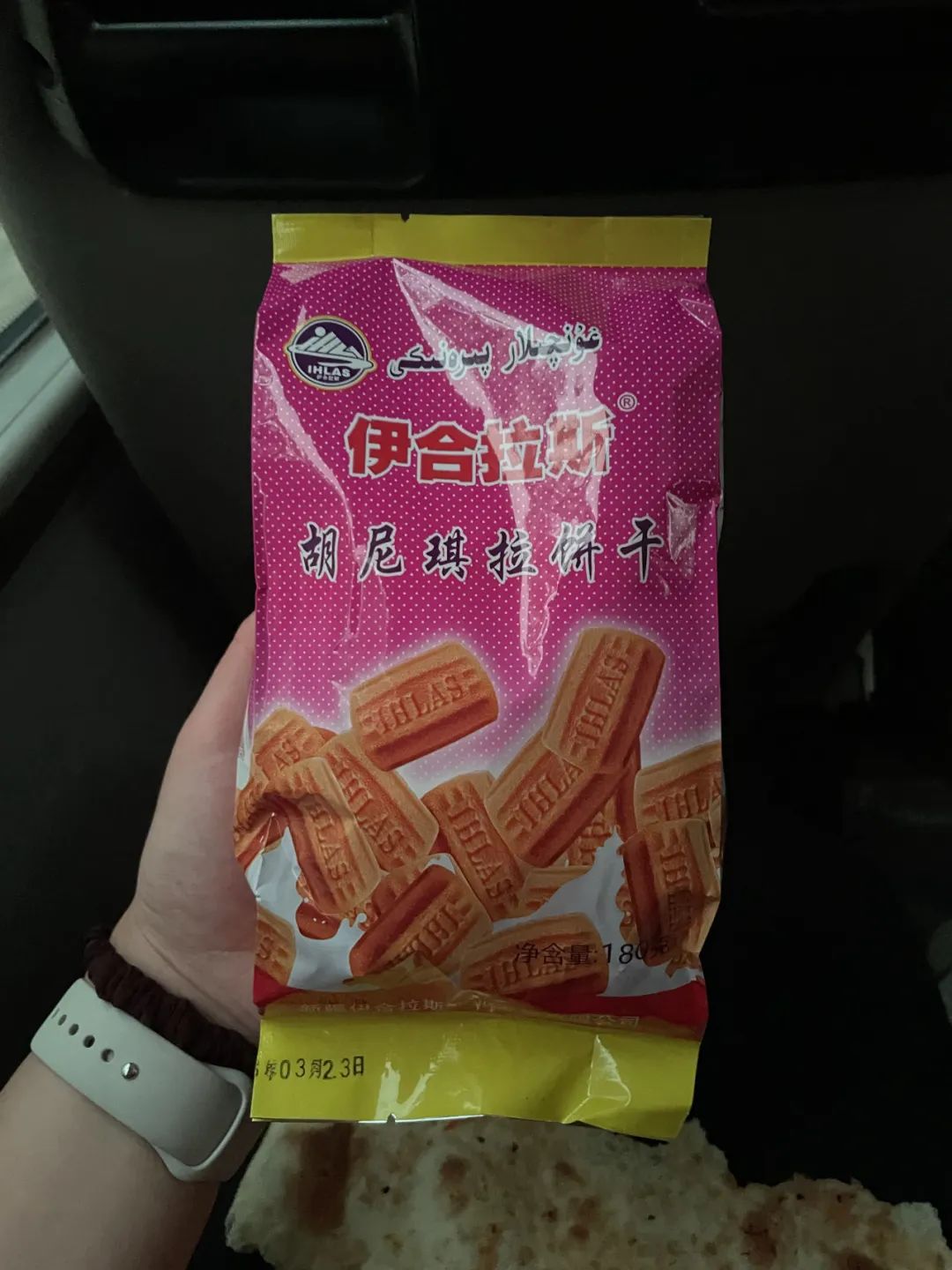 产自乌鲁木齐的新疆本地小饼干,是新疆当地人的童年回忆。这是我们在从塔吉克民族乡返回县城的途中经过一家乡村小商店买的。伊合拉斯是新疆当地一家实业公司的名字。
