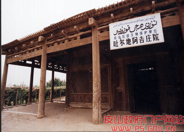 接着,我们参观了一座建于1915-1916年,拥有百年历史的维吾尔族阿依旺风格的特色民居——吐尔迪·阿吉庄园。庄园曾经的主人吐尔迪•阿吉经常到当时的中国内地以及土耳其、沙特阿拉伯、中亚等地经商,出于对各地文化的喜爱,便综合了中原、中西亚等地建筑艺术风格来装饰自己的庄园,才有了如今这座极具风格特色的精美华丽的宅子。庄园建成时,新疆还是半封建半农奴社会,而如今早已改天换地,成为了摆脱绝对贫困、正阔步走在社会主义现代化道路上的新边疆。园中几人合抱的古老柳树,见证着皮山县和这个家族经历的沧桑巨迁。