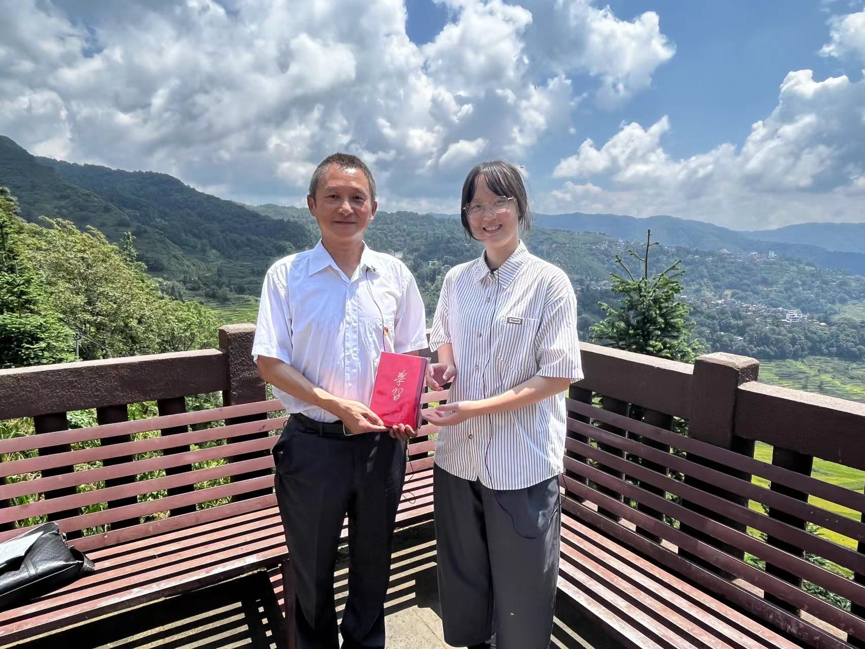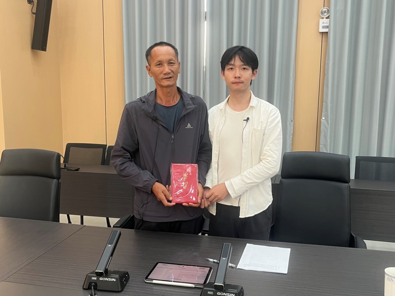 ▲新葡京官网 硕士生于东立访谈元阳县农业农村和科学技术局副局长徐国卫后赠书留念
