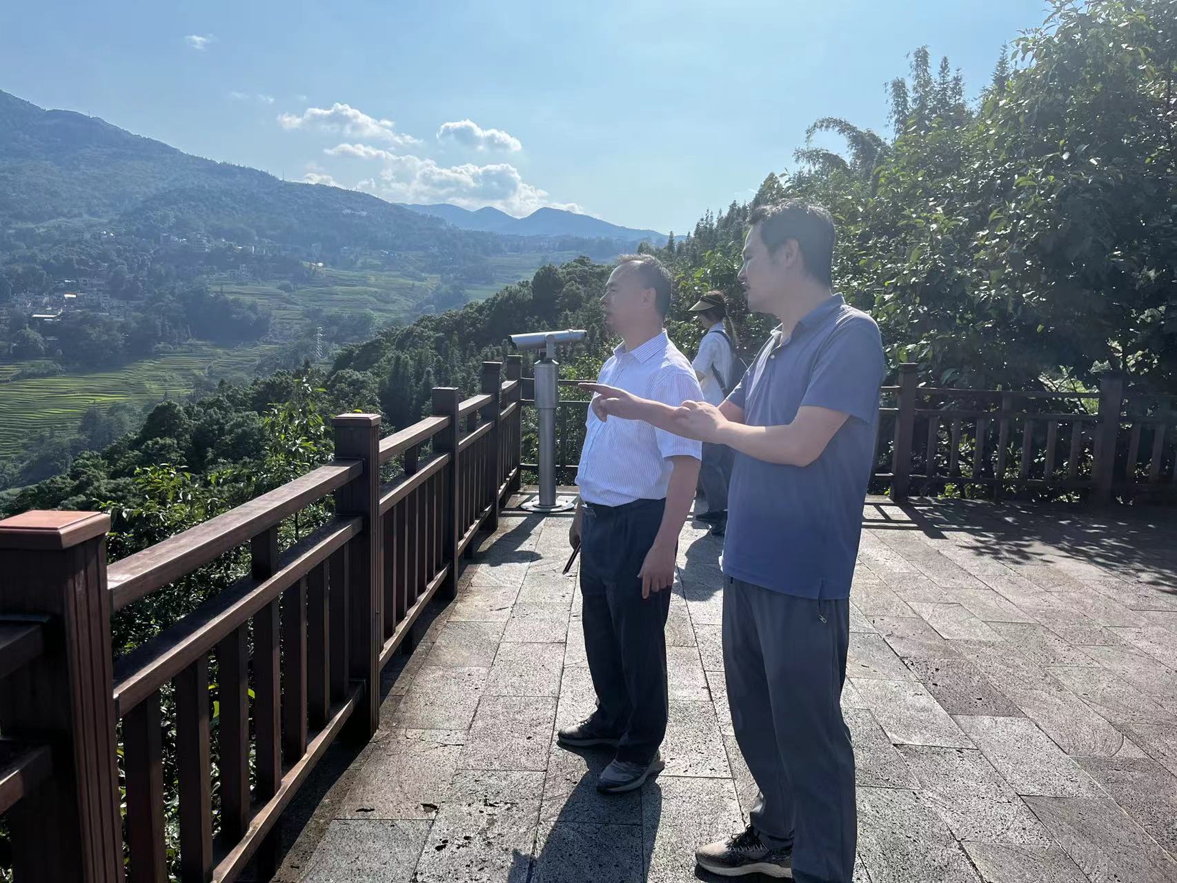 ▲宝华镇人大主席刘羽介绍撒玛坝万亩梯田