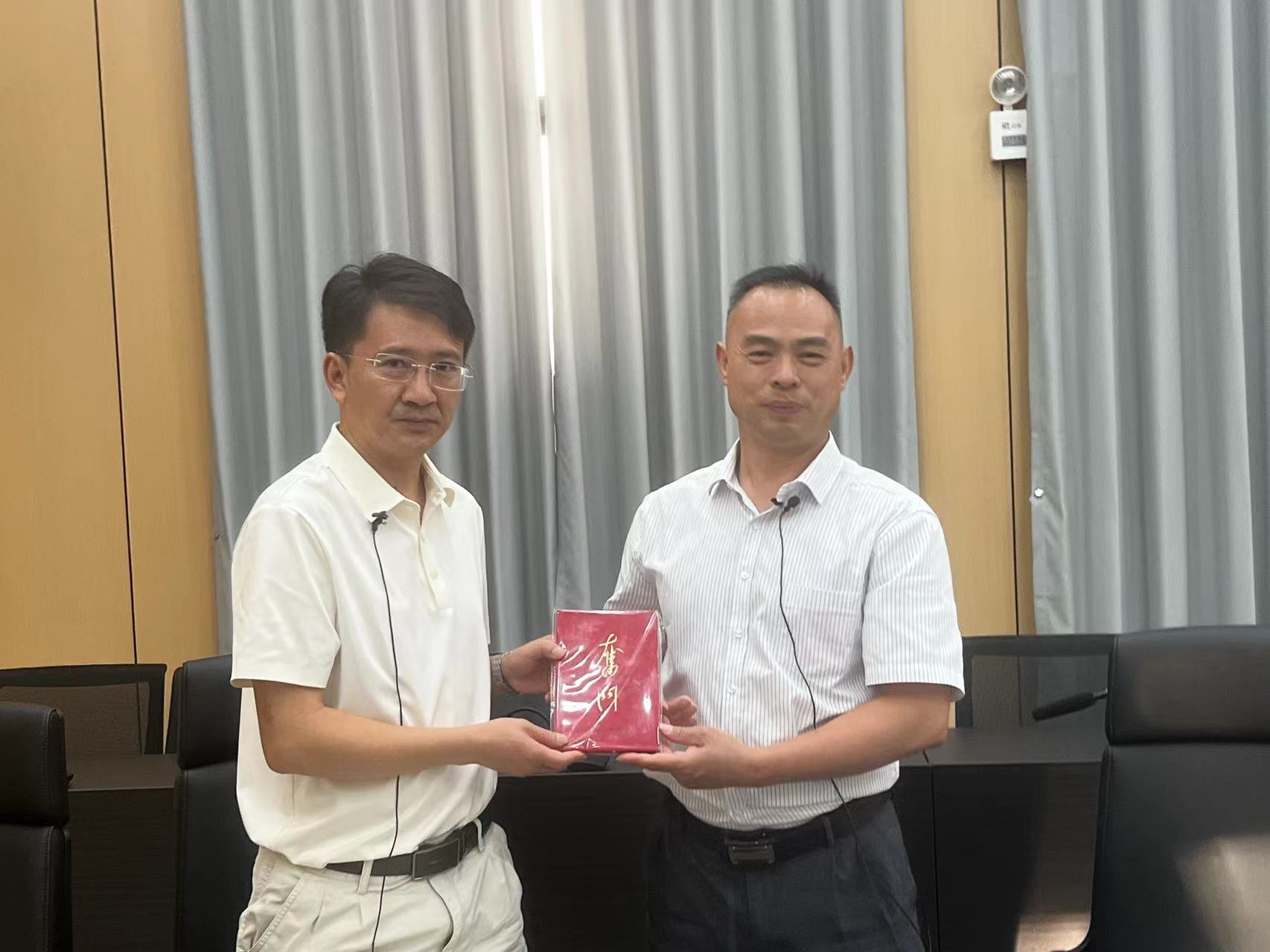 ▲新葡京官网 博士生杨力权访谈南沙镇党委书记李家亮后赠书留念