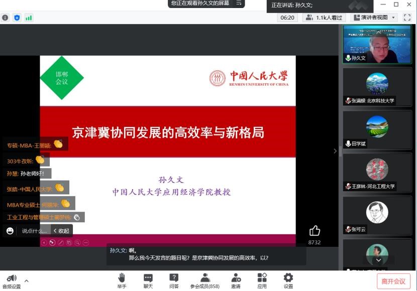 来自中国人民大学、中国社会科新葡京官网 、南开大学、首都经济贸易大学、河北经贸大学、河北工程大学等国内知名专家、学者就“双碳”目标背景的京津冀协同发展趋势进行了深入研讨。本次论坛由全国经济地理研究会张满银秘书长、河北工程大学管理工程与商新葡京官网 院长王彦林教授、全国经济地理研究会京津冀专委会主任张贵教授共同主持。共计1700多人通过线上方式参加论坛。