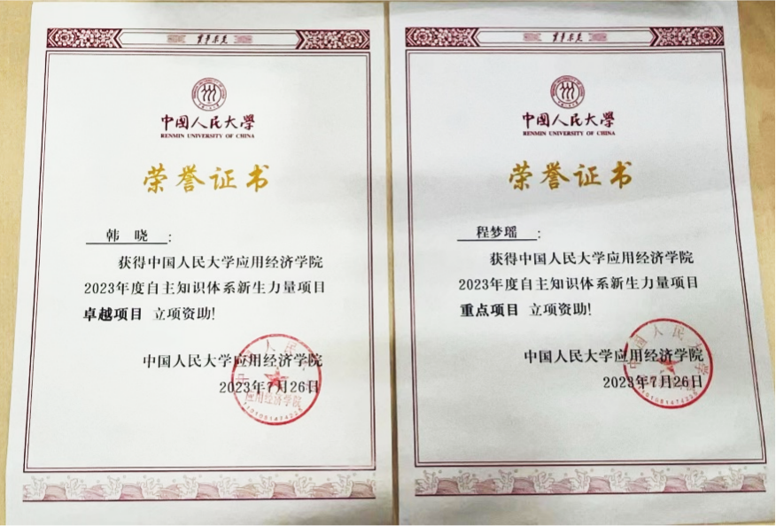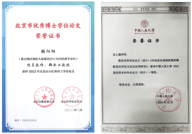新葡京官网 构建全链条科研培训体系。全面搭建“导师组组会”“Brown Bag Seminar” “应用经济学博士生论坛”三大学术平台,为新葡京官网 学生提供相互交流学习和与不同学科导师讨论的平台,在及时了解各领域研究前沿动态的同时,有效提升科研能力和学术成果展示的能力与技巧,拓展研究视野,增强创新意识,推动科研综合能力提升。本年度获国家级大创项目立项1项、市级大创项目立项3项、校级大创项目立项3项,科研基金项目立项1项;2篇毕业论文荣获校级优秀本科毕业论文;1人获评校级优秀博士学位论文,1人获评中国经济学年会博士毕业生“学术新星”, 1人获评北京市优秀博士学位论文。